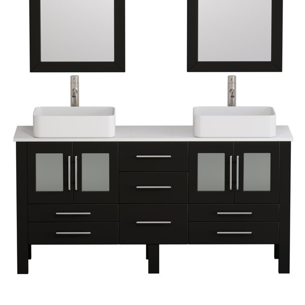Creating a complete setup for your master bath, this contemporary double sink vanity includes two mirrors and adds plenty of storage 60 wide x 21 deep x 35 high Weighs 2712 lbs Mirrors are 36 high x 28 wide Style # 97R36 at Lamps PlusPlus, this vanity sink also comes with two matching mirrors complementing the design The abovecounter sink features the highest quality ceramic material It has a durable 05inch tampered glass on top, which is pretty easy to clean With five drawers and double cabinets under each sink, you'll have plenty of storage space for two people to keep all morningA double sink will transform your vanity without adding much extra width, and if you spring for a wallmounted option, you can save space under your sink, too 07 of 24 Cozy Things Up With a Rug Cathie Hong Bathroom floors tend to be lined with tiles, which can feel cold and harsh on bare feet, so cozy up your space with a rug This rug can be as bold or as subtle as you
